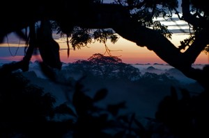 I awoke just as the sun was pinking the eastern horizon and jumped up to try to get some pictures. There were a few fluffy clouds now – all the better for photographing and I had a great time trying to capture the moment. Eventually though I just gave up trying to get the perfect picture – it was impossible I think, and just sat on the platform with my socked feet hanging over the edge (how far I’ve come in terms of fear of heights) and reveled in the rising sun. It was a beautiful moment, one that I won´t soon forget and was a perfect cap to my time in the rainforest. I don´t know how I got so lucky.