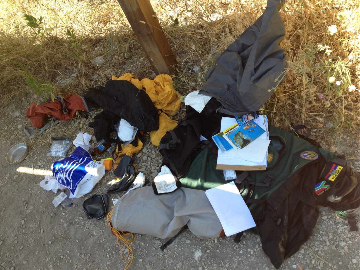 The thieves were extremely thorough. Everything was opened and turned out, even tiny compartments of pockets and camping gear.