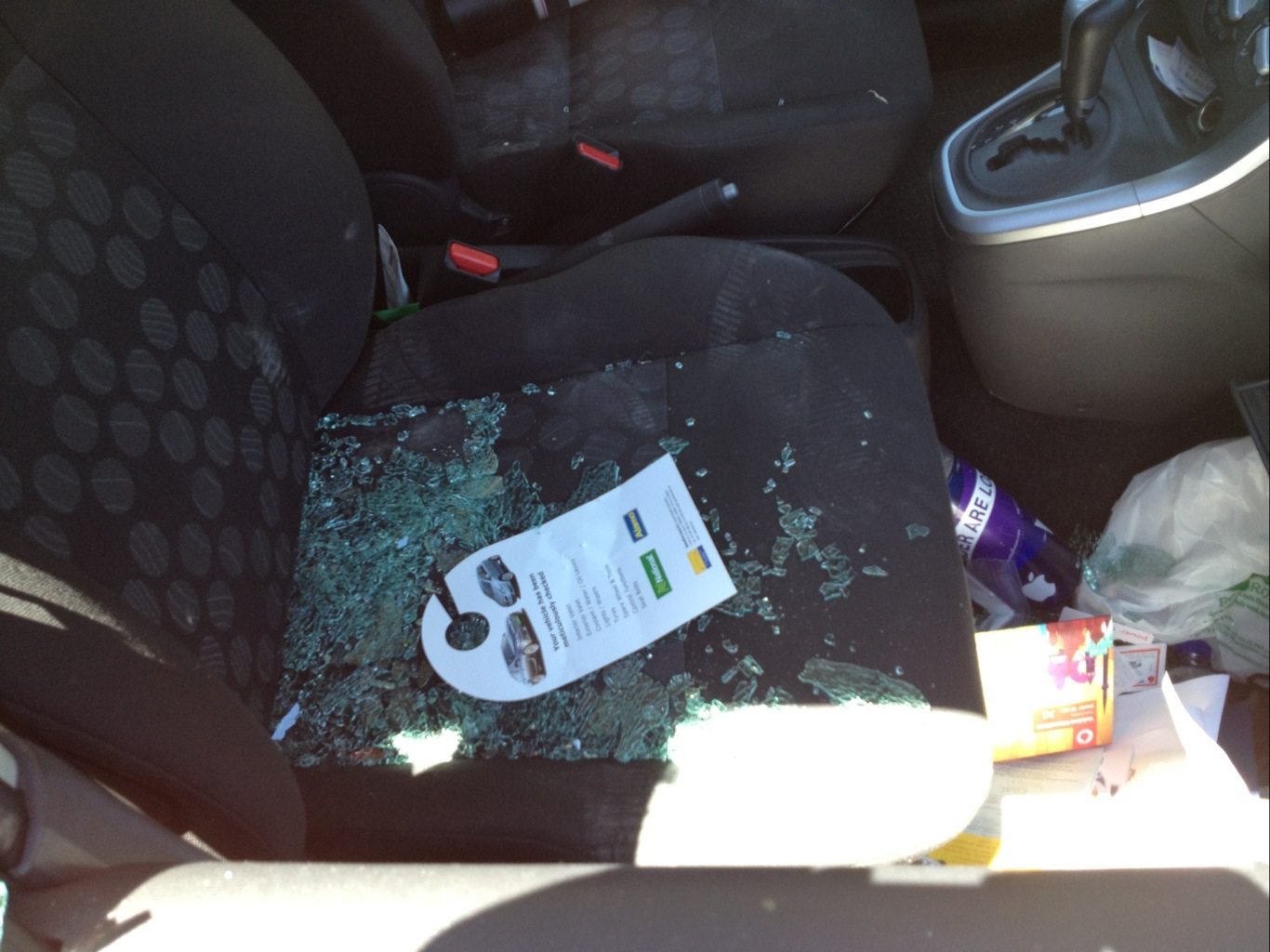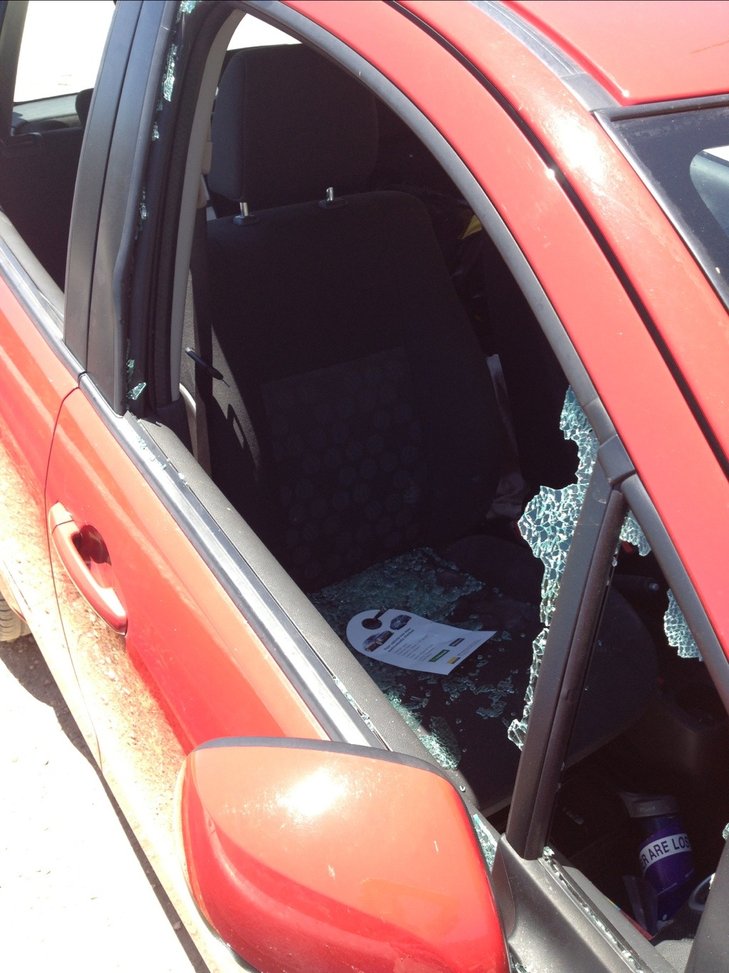 There are still some details that are confusing: they smashed the windows way more than was necessary to get into the car and they took all of my stuff to the comfort of a shaded cupola 10 m down the trail. But the end result is the same. They made off with my iPad and some other electronic and camping gear.