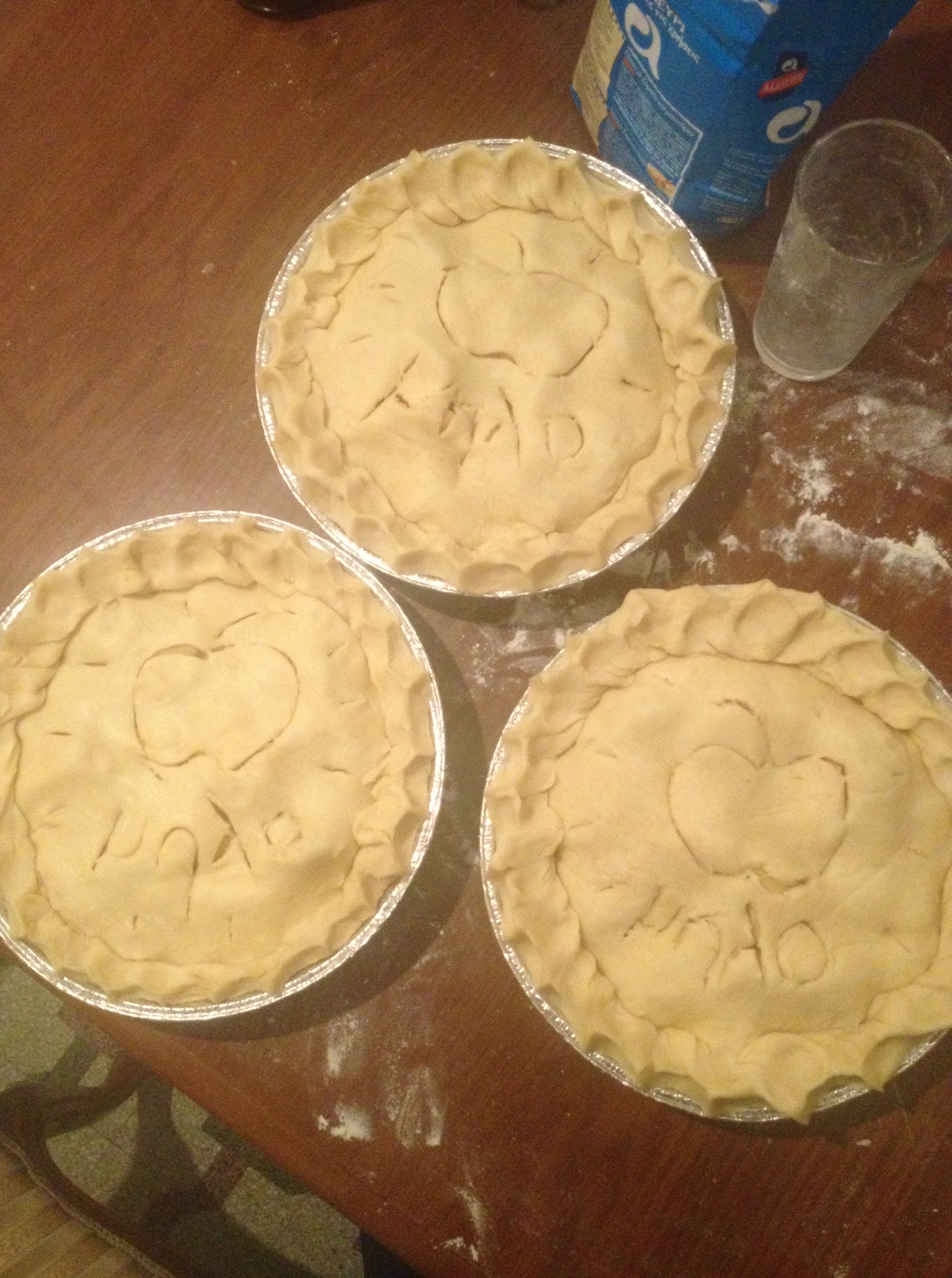 I had to make a few impromptu substitutions, especially in the crust. Without measuring cups there was a lot of best guessing going on. Instead of lard I used… something… I’m not sure what. I think it was a pastry butter but it may also have been an olive-oil rich vegetable crisco type thing? No sour cream, but Greek yogurt worked very well. Anyway, despite all of that, I was happy with the result.