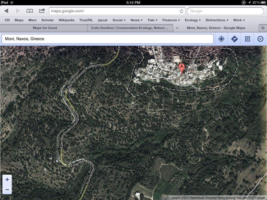 If you want to see some of my terraces you can actually see them on google maps. Search for Moni, Naxos, Greece and look in the valley to the south. That’s where I’m spending my days!