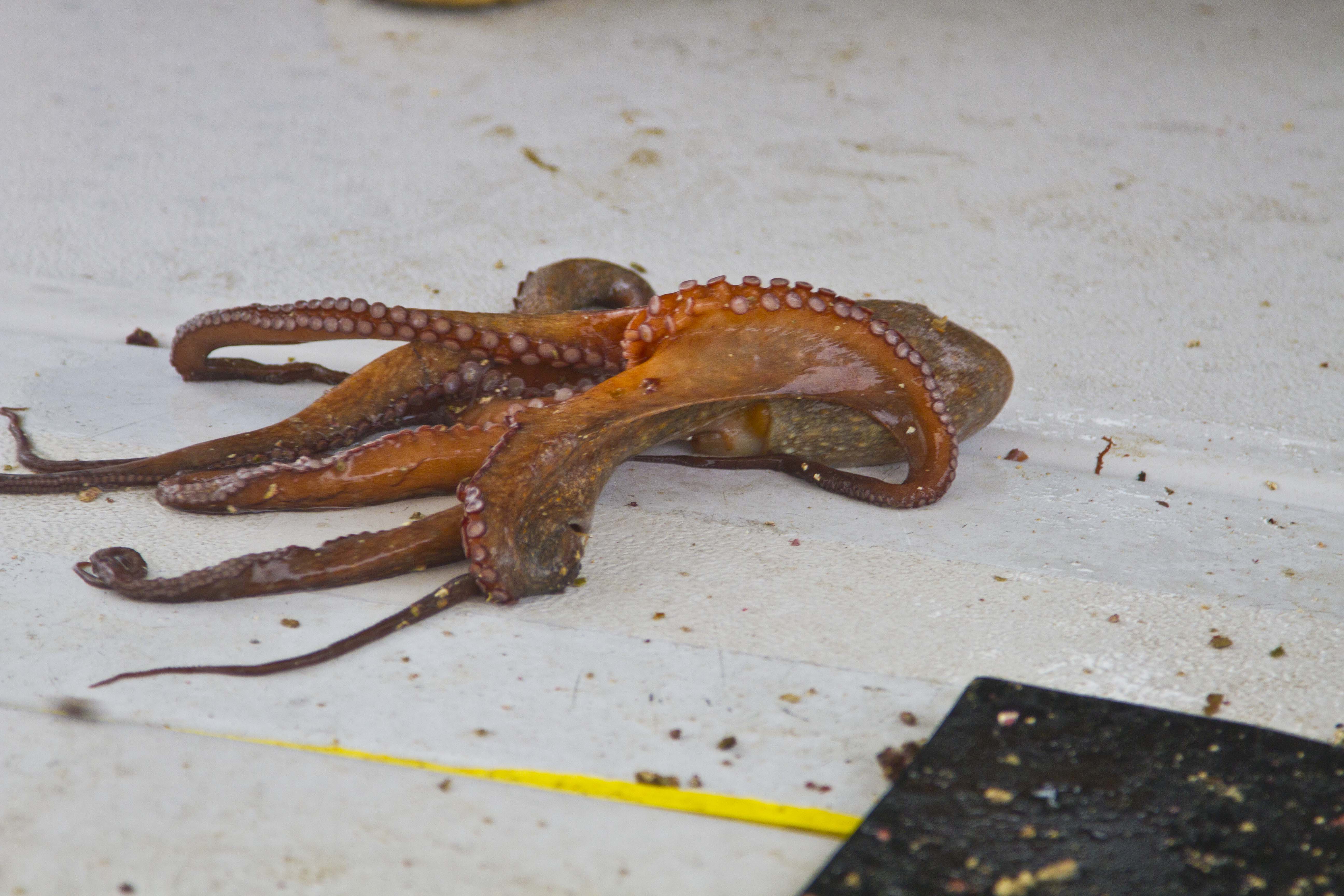 The two of them, as per normal in this part of the world I take it, used massive nets that sat at the bottom of the sea overnight. That means early the next morning when we pulled up the haul, we caught a large variety of fish but also a whole suite of other things, living and nonliving. Over the years in all my different environmental studies classes I’ve heard lectures and read papers about the impacts of “by catch” on marine fisheries, but it was fascinating to see its effects in person. We pulled up fish for the table, along with a small host of stingrays with a barbs that would likely have sent me to the hospital (they didn’t let me take those out of the nets). I found a hermit crab almost the size of my fist and a number of star fish of various shapes and sizes. We caught one octopus which made a mad dash for the side of the boat (it was caught before it could get there and put safely in a bucket). The big breadwinners of the trip were a bunch of really large lobsters. They were covered in spines and a real trick to get out of the nets. More than anything else, I think my hosts were most excited about getting a decent haul of those.
