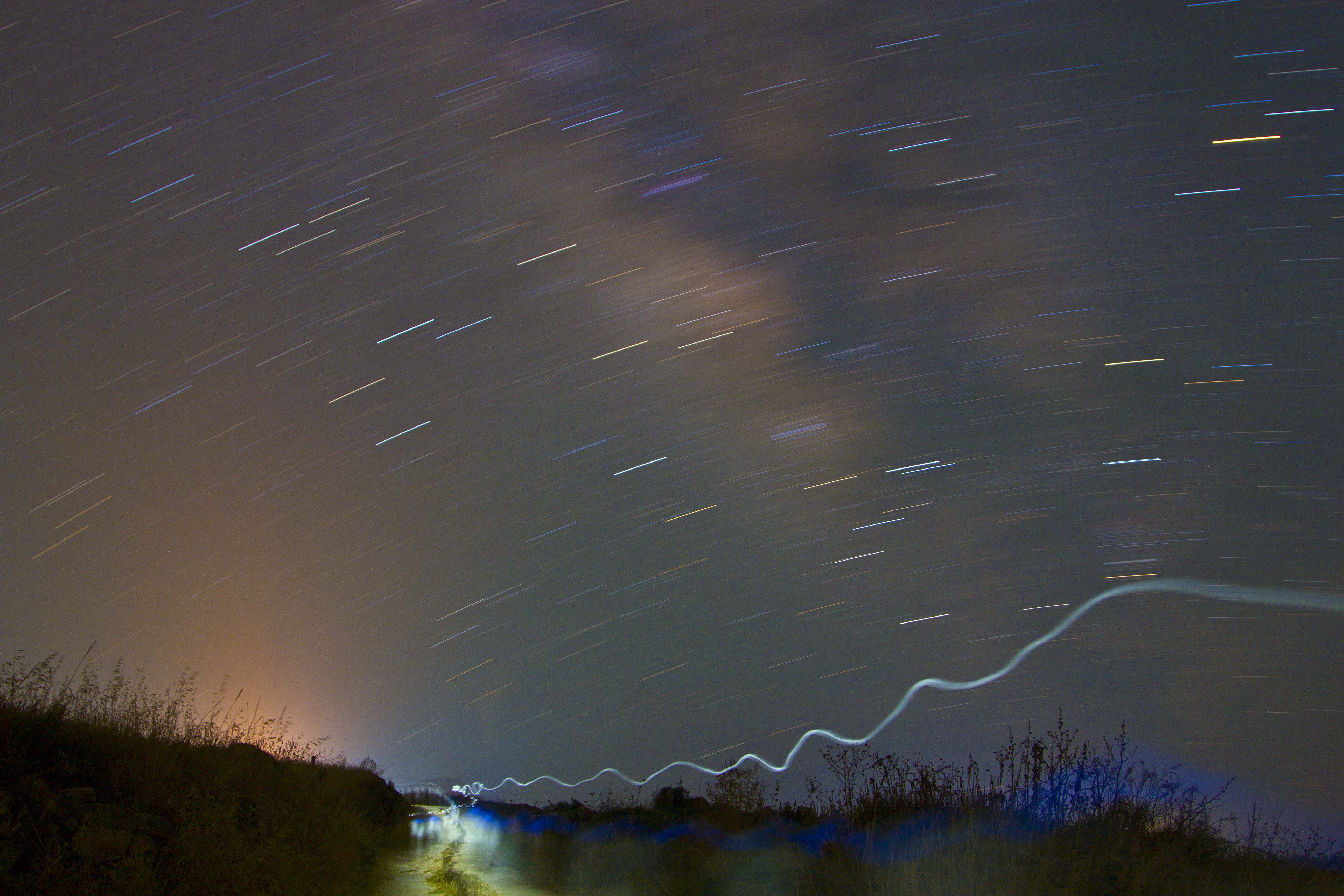 I took this picture while walking away from the camera for about 100m. I was holding a flashlight, but it was at my hip, and the only thing blue that I was wearing was my shirt, so I’m not really sure what the movement stripes correspond to on me. But, regardless, I like the shot.