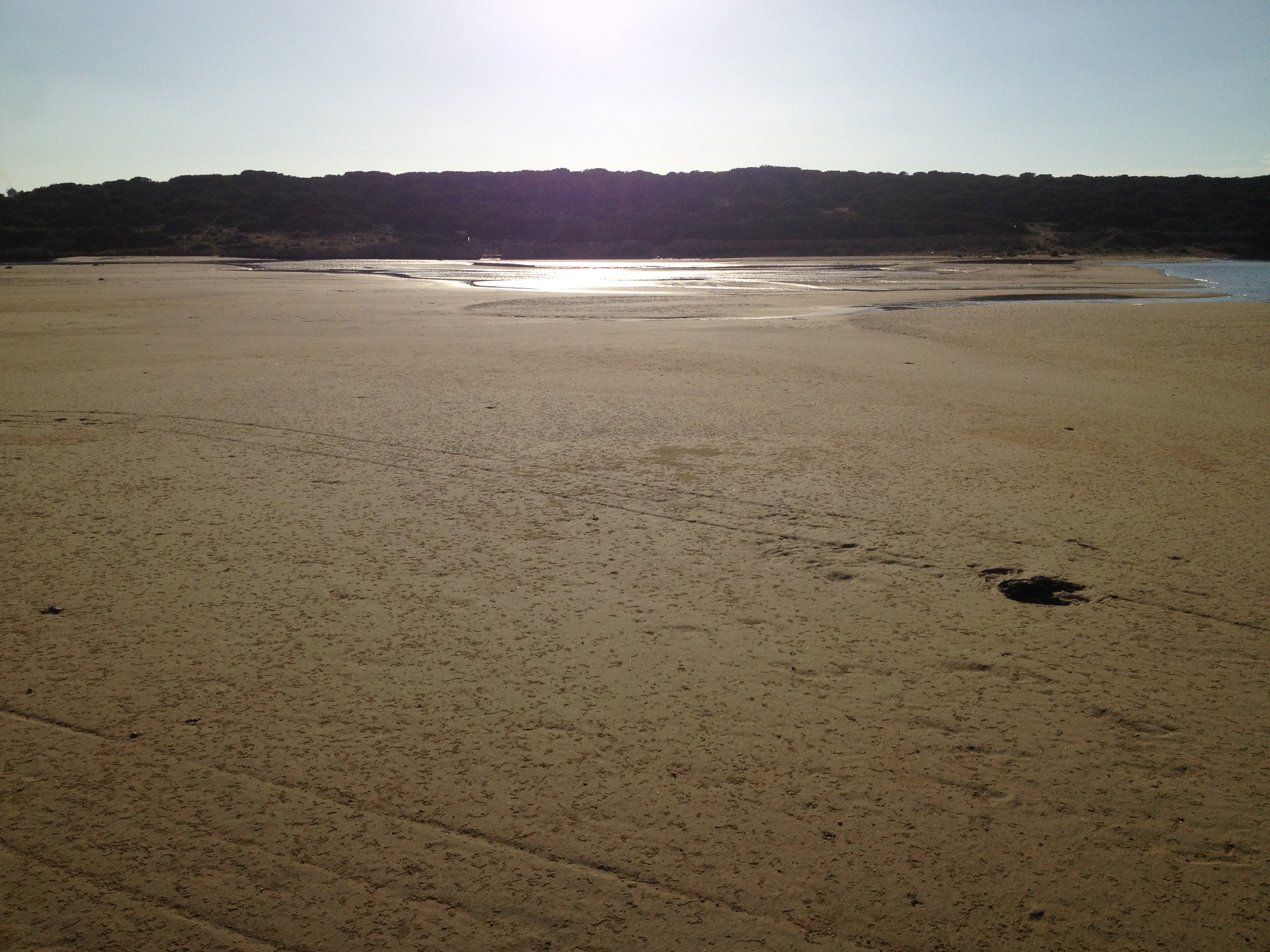 IMG_1993Here you can see the sand bar already with swails of water half-crossing in places. The maximum elevation of this sandbar is centimeters above sea level. Water had actually formed a bit of a moat in front of the gate onto the island.IMG_1994Luckily we were able to get around the moat, hop under the goat fence, and get onto the island (not a very effective fence).