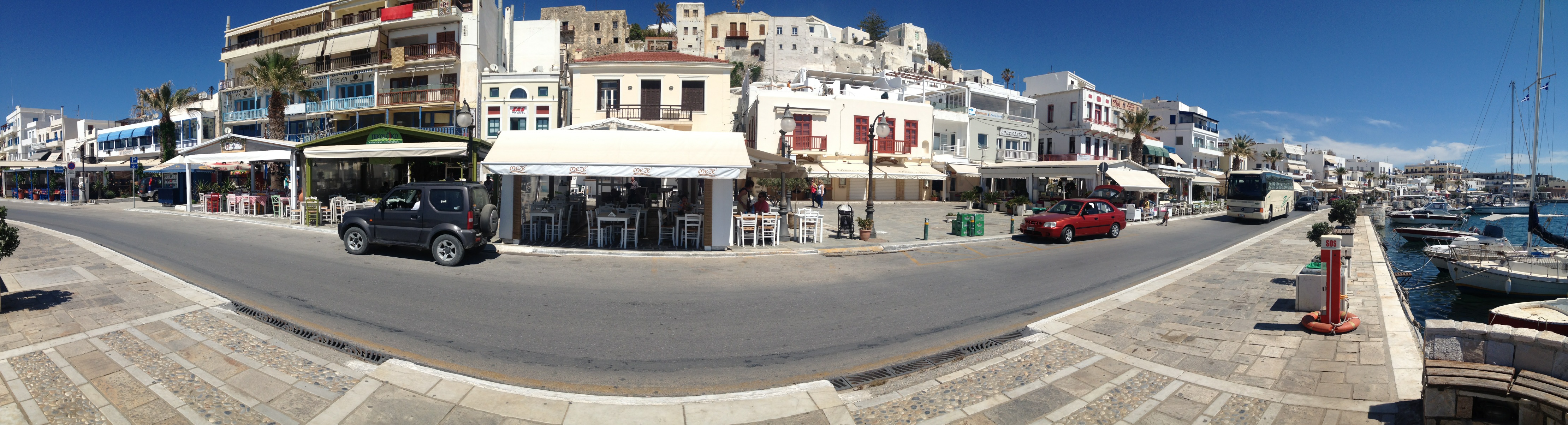 And here we are on the main drag. This is the road along the port of Naxos. To the left of this picture is the main dock for the Blue Star and the Portera. To the right is Cafe Citron (and lots of other things, but that’s one of the most important landmarks for me!). Pikantiko there with the Suzuki parked in front, that’s where I get the gyros, and yes, I snapped this shot as I was happily walking away with another in my belly after lunch.