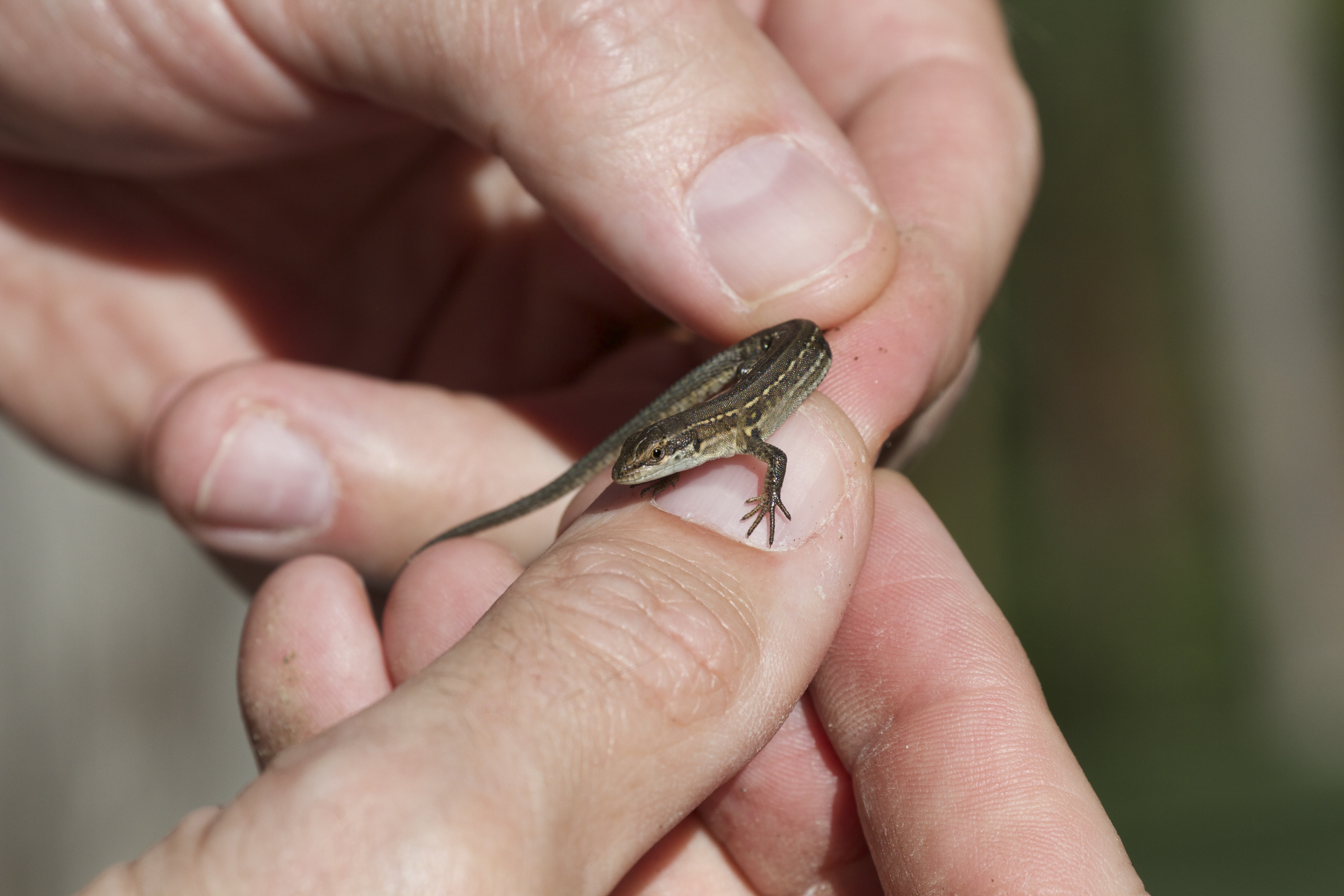 I’ve blotted out names for privacy’s sake, but as you can see, the landowner was spot on! This is a (very) pregnant female Italian wall lizard. He even gave some really plausible suggestions for how it got there – by tracks or by truck.